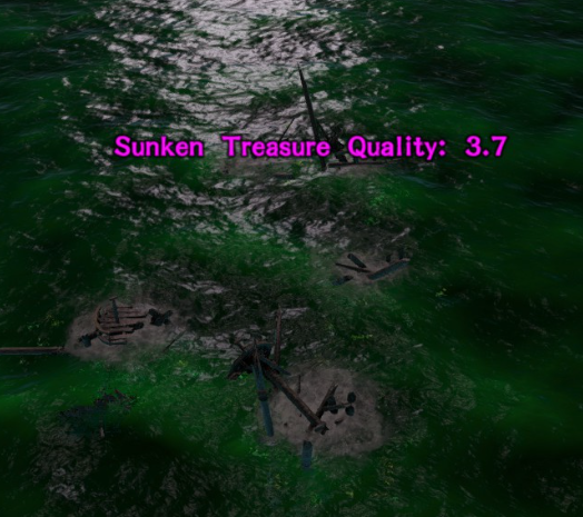 Versunkene Wracks gehören zu den Standard Elementen des Spiels. Wir haben nur den Loot angepasst. Sie hinterlassen Trümmerteile an der Wasseroberfläche und du kannst die Qualität des Wracks an der Anzeige ablesen und so einschätzen ob sich für dich der Tauchgang lohnt. Um möglichst schnell nach unten zu gelangen kann man eine Möwe verwenden, welche die Tauchgeschwindigkeit erheblich verbessert. Wenn du es langsam und ruhig angehen möchtest kannst du auch einen Taucheranzug anziehen. Das hat den Vorteil, dass du unter Wasser nicht angegriffen wirst. In versunkenen Wracks kann du Notenblätter, Mythos und Gold finden. Bei einer Qualität ab 10 können auch Module in den Wracks zu finden sein.