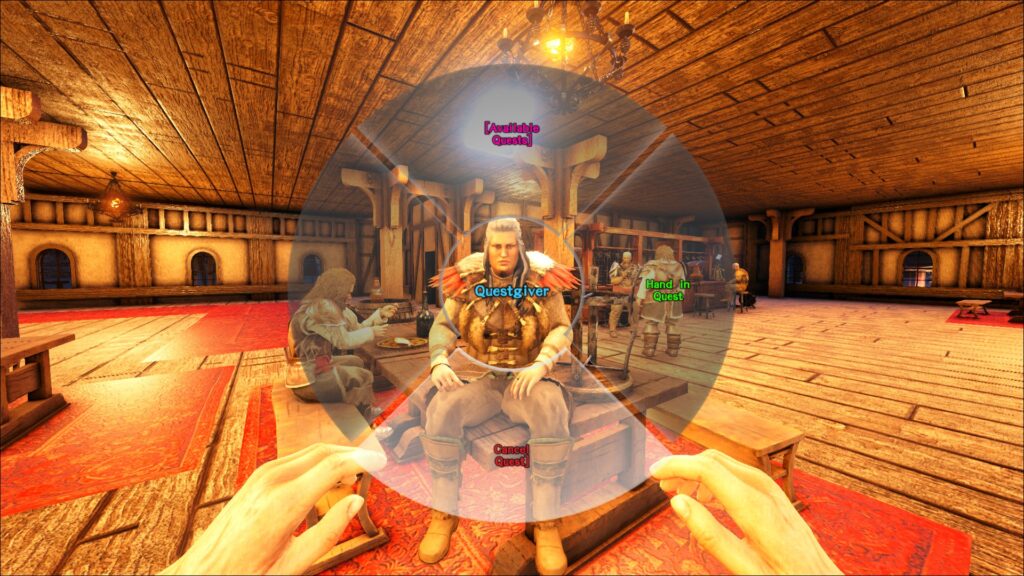 Offer to share with the usual "radial menu" ("E" press), the other accepts as well and bang: both have the "Kill Yeti" quest. However, there is a catch: to prevent it from becoming too easy, the number of targets to be killed increases by a factor of 1.33, in this case from 3 to 4 yetis. Even if it goes without saying: If you want to quest, you have to be friendly! Aggressive chat spam "Search XY for quest" is absolutely forbidden!!! Use the Discord instead, for example.