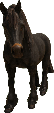 The horse is a loyal and elegant mount that helps players to explore the wide world quickly and comfortably. It is robust, fast and perfect for long journeys as well as for transporting goods. Equipped with a trailer and a crate placed on it, it can transport large quantities of resources.